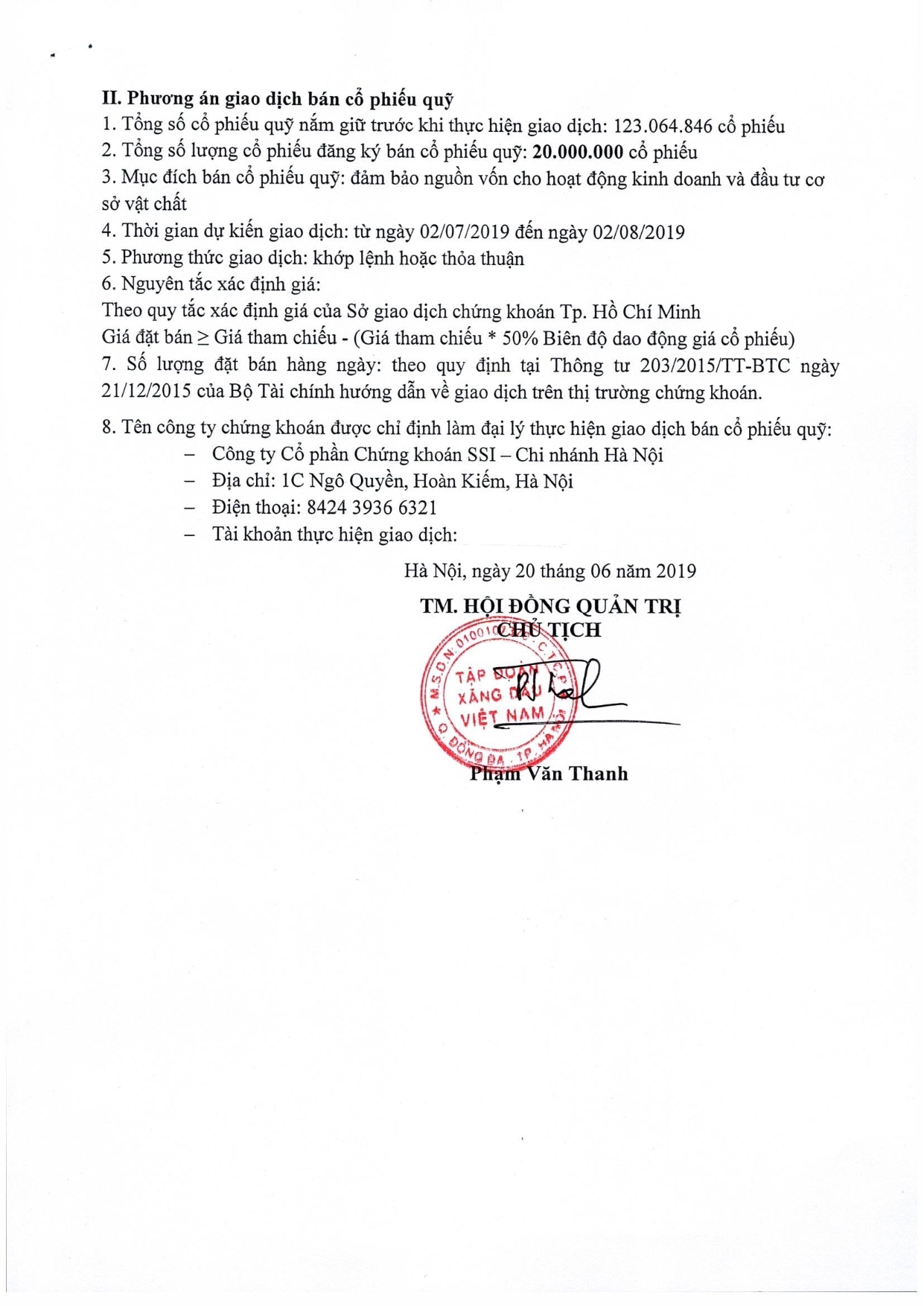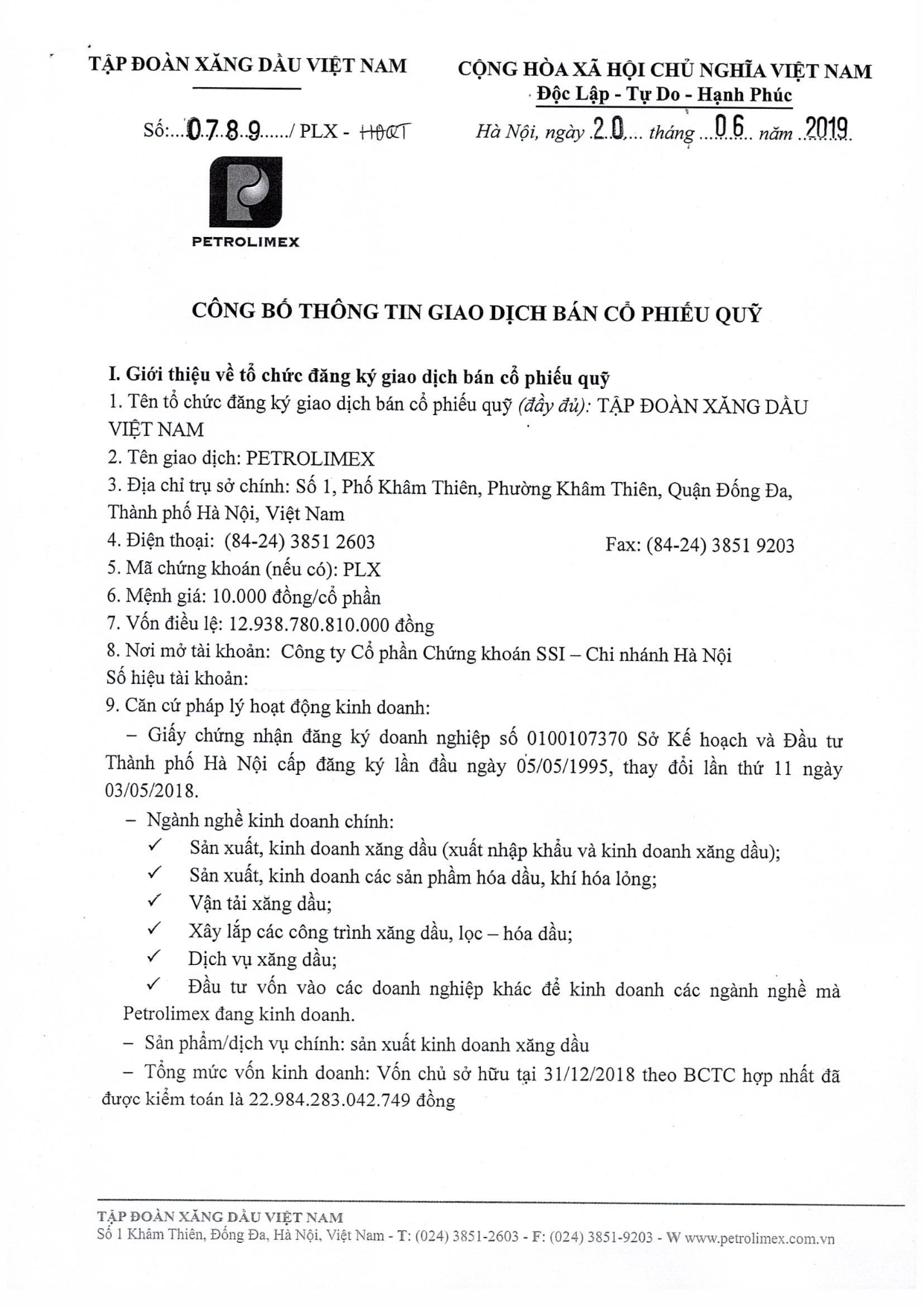 PLX công bố thông tin giao dịch bán cổ phiếu quỹ